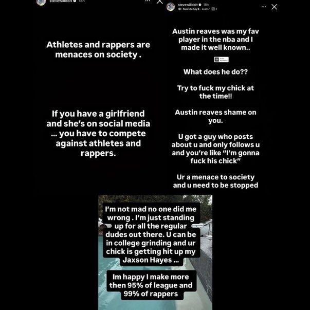 In his Instagram Story, Steve directly tied Reaves to Celina, claiming that the NBA guard made moves on her while they were still together. He said, “Austin Reaves was my fav player in the NBA … what does he do?? Try to f**k my chick at the time.” (Complex)