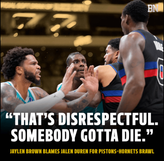 “That’s disrespectful… Somebody gotta die” Jaylen Brown blames Jalen Duren for Pistons Hornets brawl