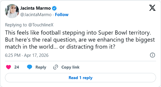 Some fans also raised concerns about the extended halftime duration, fearing it could disrupt player momentum and the natural flow of the match.