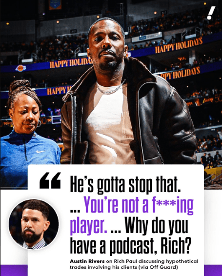 A new kind of conflict is brewing in the NBA, and it’s not on the court. It’s happening on podcasts and in media soundbites. At the center of the latest storm are two names: veteran guard Austin Rivers and super-agent Rich Paul.