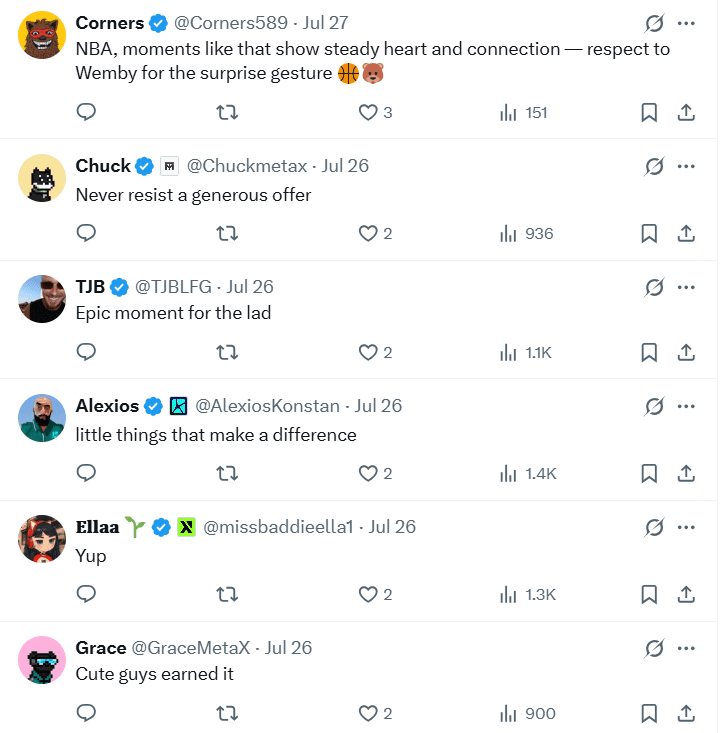 Basketball, after all, is more than just competition. It’s community, connection, and emotion. And when a player like Wembanyama takes time to live that out, it reminds us all why we watch, cheer, and care so deeply about the sport.