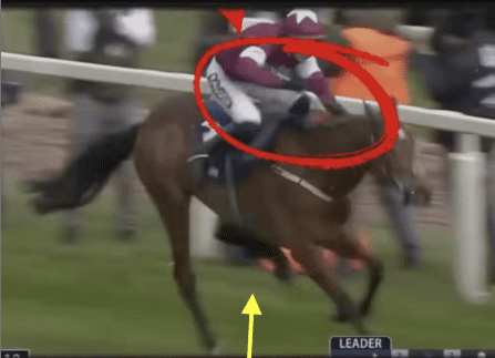 During the final stretch of the race, Gold Dancer fell at the last hurdle. Despite the fall, the horse got back up and continued, limping across the finish line to secure victory.